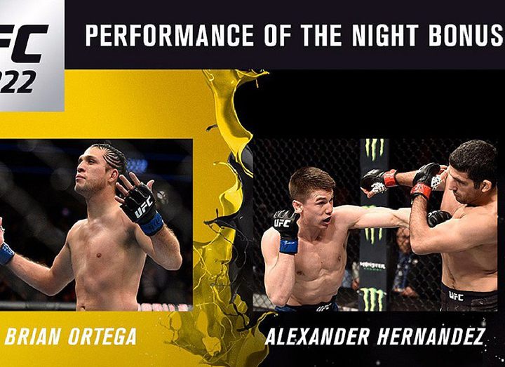 Шон О’Мэлли и Андре Сухамтат были премированы как участники «Боя вечера», а Брайан Ортега и Александр Эрнандес получили бонусы за «Выступление вечера».